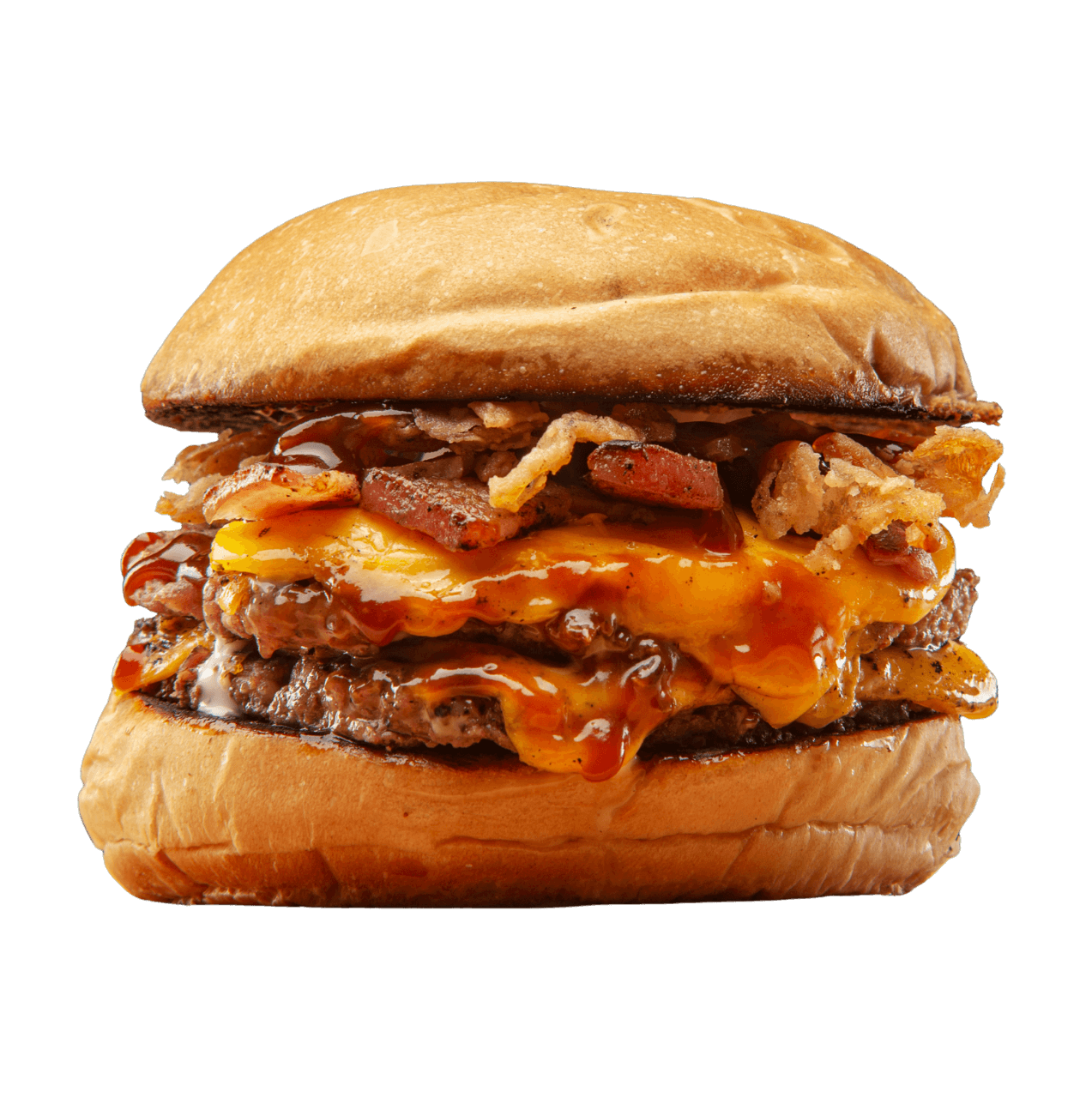 Carne a la parrilla, lechuga, tomate, cebolla, pepinillo, queso, huevo y tocineta.
